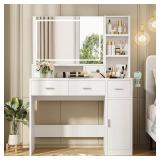 【Equipped with Power Strip】This makeup vanity is equipped with a charging station that includes 2 USB ports and 2 standard plug sockets, making it easier to connect a hair dryer, curling iron or beauty instrument, and also charge your phone, tablet or other electronic devices at the same time.