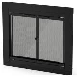 (124)Stanbroil Fireplace Glass Cabinet-Style Door, Black Finish, Medium, Decorative Fireplace Screen Door for Fireplace Accessories