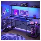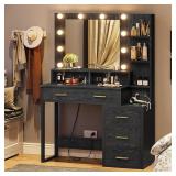 Makeup Vanity with Lights and Charging Station, Black Vanity Desk with Mirror and Lights, Makeup Table with 5 Drawers and Shelves, Vanity Mirror with Lights Desk