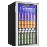 Midea MERV115T3AST 115 Cans Beverage Refrigerator with Adjustable Temperature, Removable Glass Shelf, LED Light, Silver