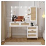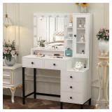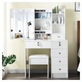 - 【Ample Storage Space】The tier shelf above the desktop and the 3-tier storage shelf on the right side provide you with open storage space, and the 5 drawers provide you with hidden storage space, which can easily hold all your cosmetics, hair dryer, and other beauty essentials, keeping your desktop clean and tidy. In addition, the height design of the 3-drawer chest can also be used as a nightstand, which saves money and space.