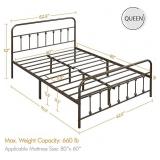 Novilla Queen Bed Frame with Headboard, Metal Platform Bed Frame, Heavy Duty, No Box Spring Needed, Wood Slat Support, Easy Assembly, White