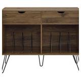- WELL CRAFTED: Made with wood veneer in a dark espresso brown finish. Metal tubular legs with antiqued goldtone finish. Fixed lower shelf. Casters for easy mobility