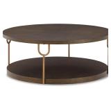 Signature Design by Ashley Brazburn Contemporary Round 42" Coffee Table, Metallic & Brown Finish