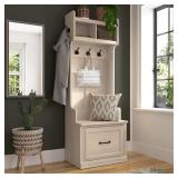 Bush Furniture Woodland 24W Hall Tree and Small Shoe Bench with Drawer in White Washed Maple | Narrow Foyer, Mudroom, Entryway Storage