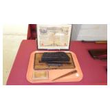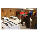 | THIS SALE WILL FEATURE SPORTSMAN RELATED ITEMS ONLY TO INCLUDE 52 GUNS. (LIST OF GUNS BELOW) WE ARE A LICENSED FIREARMS DEALER AND WILL FOLLOW ALL FEDERAL ATF REGULATIONS, INCLUDING "NICS" CHECK. BLACK POWDER AND ANTIQUES ARE EXEMPT. WE NOW HAVE A NEW YORK STATE DEALERS PISTOL LICENSE. IF YOU HAVE ANY QUESTIONS PLEASE CALL. WE ARE INTERESTED IN YOUR GUNS AND SPORTING GOODS FOR FUTURE AUCTIONS. PLEASE CONTACT US AT THE NUMBERS ABOVE. TAXIDERMY: BEAR RUG WITH INDIAN MOTIF DESIGN ON HIDE, 6 PT. & (2) 8 PT. DEER HEADS, 9 PT. ANTLERS ON PLAQUE. AIR PISTOLS:H.M. QUACKENBUSH c.1871 (FOR SHOT OR DARTS) JGA DRGM GERMAN SPRING LOADED DART PISTOL. AIR RIFLES: BENJAMIN FRANKLIN MODEL 310, CROSMAN MODEL 99, SHANGHAI AIR GUN FACTORY. COMPOUND BOW: BROWNING X-CELLERATOR, MATHEW DRENALIN WITH CASE. BUSHNELL NIGHT VISION 2.5x42 AUDIO MONOCULAR, SNOWSHOES, EARLY POWDER HORN, CTK PRECISION BRASS CATCHER, (2)TREE STANDS (SUMMIT CLIMBER & REMINGTON). GUN MAGAZINES: WINCHESTER M-100, (3)DOUBLE MAGAZINE POUCHES WITH (2)M-1 MAGAZINES EACH, REMINGTON WOODSMASTER, (2)1911. AMMO INCLUDING: 7.62x54R, 7.62x39, 7.5x55 SWISS, .257 WEATHERBY MAGNUM RELOADS AND 7.5x50R LEBEL. EARLY S&W J-FRAME ROUND TOP PISTOL GRIPS. (7)TACKLE BOXES FULL, LURES: HEDDON DEEP DIVING WIGGLER, LUNY FROG, CRAB WIGGLER, CRAZY CRAWLER WITH BOX, CREEK CHUB BEETLE, SOUTH BEND ORENO FROG WITH BOX (FOR FLY ROD). (2)DOWAGIAC MINNOWS. FRED ARBOGAST WEEDLESS KICKER WITH BOX AND "WEEDLER" SNAKE LURES. GROUP OF FLIES. FLY RODS INCLUDING: POWELL SS9034, ORVIS WESTERN GRAPHITE, G. LOOMIS IMX F964, PHILLIPSON ROYAL RF80, 4 PIECE 14' ORVIS #1101 TRIDENT TLS, THE FRASER VICTORY 1946, HEDDON KINGFISHER 104, JOHNSON SKX-1, DIAMOND BACK PBS9000 SALT WATER IM6. REELS INCLUDING: ORVIS SPEY, 3 7/8" LOOM, STH #234 WITH 2 EXTRA SPOOLS, STH #789 WITH BOX, PFLUEGER MEDALIST #1495 WITH 2 EXTRA SPOOLS, REDINGTON AL 7/8 WITH EXTRA GOLD SPOOL, GOITE 4 3/4" SIDEWINDER, JULIUS VOM HOFE (PAT. OCT. 8, 1889), EDWARD VOM HOFE #501 4/0 (PAT. MAY 20, 1902), ORVIS MADISON MODEL, ORVIS CLEARWATER CLASSIC II, MARTIN #65 WITH 3 EXTRA SPOOLS, ASSORTMENT OF SPINNING, SALT WATER, BAIT CASTING, ETC. HIP BOOTS: SIZE 11 AND SIZE 12 HODGMAN, LEE ELECTRIC MELTING POT, FISH SHAPED 10 LB. DOWNRIGGER WEIGHT MOLD, "DO-IT" BANK SINKER MOLDS (BK-1-16 16 oz. SINGLE CAVITY, BK-4-L SIZES 2,3,4 & 5). SWORD: ODD FELLOWS CEREMONIAL. BAYONETS WITH SCABBARDS: CZECH VZ23, CHILE 1895, SPANISH 1941, SWISS 1911, SEDISH 1896, (2)BRITISH MARTINI HENRY, SPANISH .43 CAL FOR REMINGTON ROLLING BLOCK, US 1917, (3)U.S. 1892 FOR 30/40 KRAG (DATED 1899, 1900 & 1901), U.S. 1899 FOR REMINGTON 7mm (BLADE REMINGTON ARMS MARKED), U.S. 1917 "W" (WINCHESTER), ITALIAN 1891/30, (2)U.S.N. MK-1 PLASTIC BLADE TRAINING, BRITISH 1907, U.S. 1942 U.F.H., U.S. M-1. BAYONETS SOCKET WITH NO SCABBARDS: U.S. 1840 .69 CAL., U.S. 1835 .69 CAL., U.S. 1861 MUSKET, U.S. 1873 .58 CAL. SPRINGFIELD, U.S. 1873 45/70 CAL. TRAPDOOR. SIDE KNIVES WITH SHEATH: KA-BAR 1226, SPANISH 1907 ARTILLERY BOLO, ANTIQUE AFRICAN CONGO DAGGER, (2) U.S. 1918 TRENCH L.F.&C., PHILIPPINE JUNGLE, KUKRI WITH SHEATH (INDIA), CATTARAUGUS #2250, SHARP STAINLESS STEEL, IROKA (GERMAN). SIDE KNIVES WITHOUT SHEATH: SPANISH 1907 ARTILLERY BOLO. MACHETES INCLUDING: (2)PILOTS FOLDING (CASE-XX AND CATTARAUGUS), ARMY AIR CORPS CASE-XX SURVIVAL WITH GUARD. GERMAN MILITARY: NAZI NATIONAL WAR FLAG (65x40), WWI/WWII ARMY FERNGLAS 08 (EMIL BUSH) BINOCULARS WITH CASE, .900 SILVER "WIKING SS NORLAND" RING, TINNIES AND ISIGNIAS, (30)+ NAZI PINS AND BADGES INCLUDING: SS NUMBERED STICK PIN "FM SUPPORTER" HONOR MEMBER, (2)PANZER ASSAULT TANK BATTLE BADGES, (3)PANZER GRENADIER INFANTRY ASSAULT BADGES, GENERAL ASSAULT BADGE, 1st CLASS IRON CROSS 1939, (2)WAR MERIT CROSS WITH SWORDS (ONE ON RIBBON), BAR TO 1939 IRON CROSS ON RIBBON, COMMEMORATIVE MEDAL OF OCTOBER 1, 1938 ON RIBBON, 1939 WEST MALL MEDAL, 1941-42 WINTER RUSSIAN CAMPAIGN MEDAL ON RIBBON, WOUND BADGE, NSDAP PARTY MEMBER BADGE, ADOLF HITLER 1933 ELECTION PIN, (2)"GOTT MIT UNS" BELT BUCKLES, LABOR FRONT HAT BADGE, POLICE HAT BADGE, (4)SS EAGLE HAT INSIGNIAS, VETERAN SS EAGLE INSIGNIA, EARLY 11mm MAUSER CARTRIDGE CASE, NAZI INFANTRY OFFICERS OVERSEAS CAP, (6) ORIGINAL CONCENTRATION CAMP PHOTOS TAKEN BY A G.I. EXTENSIVE FIND OF MOSTLY UNISSUED WWI & WWII U.S. MILITARY ITEMS TO INCLUDE: WWII ARMY OFFICERS VISOR CAP, NAVY WWII MKII FLAK HELMET, NAVY WWII QUARTERMASTER 1st CLASS LEATHER LINED HELMET WITH EARPHONES, WWI ARMY M1917 DOUGHBOY HELMET WITH LINER AND CHIN STRAP, 52mm M22 DRILL CARTRIDGE WITH TUBE, WWI TRENCH BUGLE "J.W. YORK & SONS" (CONT. 7-11-1917). (2)WWI ARMBANDS (U..S. 3rd ARMY "MP" AND "ARMED FORCES POLICE"), AAF SUMMER FLIGHT HELMET AN-H-15, AAF PILOT GUNNER AN6350 FLIGHT GOGGLES, T4 CALIBER 30 TANK AMMO BOX WITH ROTATING LATCHES, WWII AIRCRAFT LEATHER GOGGLES (DATED 1942) WITH (2)PAIR CLIP ON ASCO DATED 1948 SUNGLASSES ALL WITH POUCHES, WWI ARMY HAVERSACK "R.I.A. 1918", (29) WWI AND (6) WWII DOUBLE MAGAZINE POUCHES FOR 1911 COLT .45 CAL., (16) WWII DOUBLE MAGAZINE POUCHES FOR M-1 30 CAL., (6) WWII M-1 GARAND MUZZLE COVERS, (2)WWI ARMY MEDICAL CORPS BELTS WITH RIMMED EAGLE SNAPS, (2) WWI PEDERSON DEVICE MAGAZINE POUCHES, (2)WWI BAR 2nd ASSISTANT AMMO BELTS, (2) WWI SHOTGUN BELTS FOR WINCHESTER MODEL 97, (2)WWI ARMY 10 POCKET GRENADE POUCHES, WWI ARMY TUNIC COMPANY M 43rd INFANTRY, WWI ARMY ENGINEERS CORP TUNIC & PANTS, WWI "YANKEE DIVISION" TUNIC & PANTS, WWI ARMY OVERCOAT, (2) WWI CAVALRY RIFLEMAN'S CARTRIDGE AND PISTOL BANDOLIER, (2)BROWNING AUTOMATIC RIFLE BANDOLIERS (1 LEFT & 1 RIGHT), WWI ARMY OVERSEAS CAP, WWI ARMY SPRINGFIELD AMMO BELTS, ORIGINAL FRAMED WWI "WOUNDED IN ACTION" CERTIFICATE WITH MACHINE SIGNED WOODROW WILSON, (3)WWII 1911 COLT PISTOL LANYARDS, WWI ARMY MODEL 1900 SWORD HANGER (MARKED R.I.A. 1904), WWI "NoBUCK-L" KERR SLING, (2) WWII WEB PISTOL BELTS, WWI TRENCH ART BANK 1914-1918, WWI 1917 BOLO KNIFE SHEATH ONLY, CIVIL WAR CAVALRY ISSUE CARBINE SADDLE LEATHER SOCKET, ETC... OTHER MILITARY: WWII JAPAN