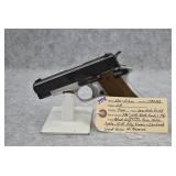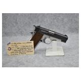 67R. Browning (Belgium) – Mod. High Power – 9mm Cal. Semi-Auto Pistol – w/4 ½” Barrel w/Sights – Blued Finish – w/Factory Checkered Wood Grips – w/Magazine – w/Browning Soft Case