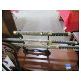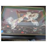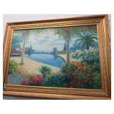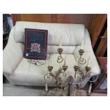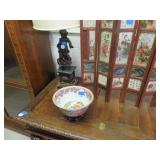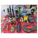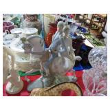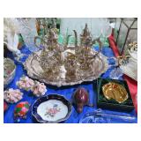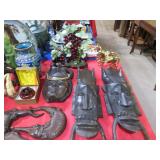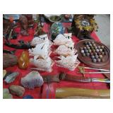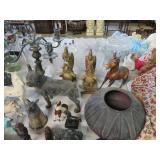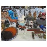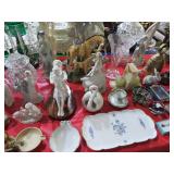 ART & SILVER: Wonderful artwork of courtyard scene; Oriental panels; Ship models; Angel artwork; Set of 4 Oriental plaques; Floral display painted on glass; Nice stained glass panel pair; Country thatched cottage scene; Ship a-sail on ocean; Garden oasis; Fighting chickens art; Pensive can-can dancer picture; Gold embroidered dragons art; Snowy cottage art; Framed porcelain plates; Matched pair of foo dog statues; Rocking horse; Pair of Dutch scenes; Linda Le Kinff signed prints; Sea life artwork; Lost lamb & shepherd print; Harbor scene; Multiple Lladro figurines; Nude statues; Large Hummels; Stone tree; Agate head of Nefertiti; Giraffe & foal figurines; Display egg with stand; Elephant; Russian lacquer box; Turtles; Bust; Buddhas; Lion; Horses; Icon style pictures; Sleeping Buddha; Fighting pheasants; Carved bear with fish; Carved crocodile pair; Masks; Framed Malaysian butterflies & insects; Scrolls; Carved horn; Lots of carved animals; Sterling & silver-plate! Sterling flatware set; Tea & coffee service on tray; Magnificent candelabra pair; Photo frame; Another nice pair of candelabras; Fox cup; Another candelabra & more!