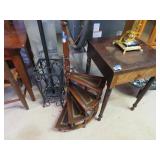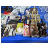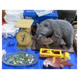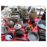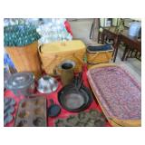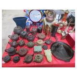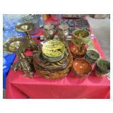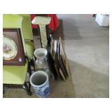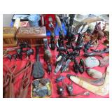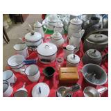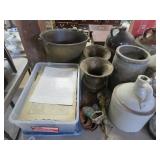 MORE: Smoking pipe collection including meerschaum & carved faces; Pipe rests; Acoustic guitar; Violins; Oriental swords on display; Milk can; Agate bookends; Large metal bell; Carving set in box; Decorated eggs; Brass candlesticks; Cameras & accessories; Horse figurines; Beaded moccasins & pipe; Fairy lamps; Foo dogs; Dagger; Knife; Framed currency; Wooden shoes; Bose; Polished stones; Napkin rings; Parrot shape wooden locking box puzzle; Brass mortar & pestle; Cast iron bulldog doorstop; Cast iron skillets & griddle; Miniature frying pan; Molds; Bookends; Brass match holder; Jewelry boxes; Desk blotter set; Pen rest; Brass candleholders; Cigar box; Wooden canister; Miniature cannon; Old keys; Brass spittoons; Large brass pail; Old jar full of matchbooks; Hand-painted checkerboard; Hand saw; Binoculars; Letter openers; Pewter miniatures; Embroidery on silk; Balance scales; Carved jade; Opium pipe; Masks; Stone grapes; Stone vase; Tetsubin; Corning casseroles with lids; Depression spice shaker set (8); Granite ware lunch tote; Granite ware basin; Large granite ware coffee pot; More granite ware; LeCreuset cookware set; Revere Spectrum in box; Old metal mug; Large assortment of white with blue trim enameled cookware-funnel, pots with lids, teapots, coffeepot, measure, cream cans, double boiler & more; Measuring cup set; Copper chafing dish; Longaberger baskets; Copper bowl; Scales; Cloisonne vases; Stone fruit; Fine & costume jewelry; Cigarette case; Jewelry boxes; Wonderful large mouth crock with blue; Pottery milk holders; Stoneware jugs; Crocks, some with lids; Inlaid stone trinket boxes; Miniature glass vases on stands; Weather station; Books of postage stamps & Golden Replicas of United States Stamps; Cash register bank; Toy cookstove; Marbles; Buddy L Circus truck with animal; Boomerangs; Estwing hatchet; Another hatchet; Geodes & mineral specimens; Cuckoo clock; Fantastic wall clocks; Seashells carved into sea life; Outdoor furniture! Polywood table & umbrella with rotating chairs; Porch rockers; Side tables; Lounge chairs; Cast iron garden seats, bench & table; Small garden bench; Tile top table & chair; Another fine patio set; Garden frogs; Wrought iron patio set; Wrought iron tea cart; Wire furniture; Baker’s rack; Tool chest with contents; Coolers; Toolbox & much much more!