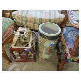 FURNISHINGS: Wonderful curved buffet with nice detailing; Great marble top 3 drawer bowfront chest; Fantastic bird cages on stands; Early chest of drawers; Baker end tables; Harden 4 drawer hall table; Henkel Harris end table; Really nice oak china cabinet; Harden lingerie chest; Fancy vitrine; Oriental inspired buffet; Painted blanket box with Greek mythological scenes; Outstanding dresser with carved busts; Oak ice box; Baker Furniture dining chairs; Marble top bombé front buffet; Really nice Victorian dresser & mirror with marble tops; Golden oak serpentine front dresser with cradle mirror; Large 2 door painted Oriental cabinet; Heavily carved chair; Nice porcelain lamp with medallions; Splendid 7 panel Oriental table screen; Marvelous hanging clock; More fabulous clocks; Tremendous table lamps; La-Z-Boy Leather sofa; Banded edge dining table with 8 chairs & table leaf; Harden bedroom set (4 poster bed, dresser with mirror, nightstand pair); Leather love seat; Oval dining table with 6 chairs; Library table with lots of carving; Nice display cabinet with band decoration; Flip top server; Open bookcase with top drawer; Pair of upholstered armless chairs; Side table with raised top edge; Pair of small footstools; Pair of padded footstools with gold base; Bench with high sides; Quilt rack; Carved blanket box; Room screen; Oak farm table with pressed back chairs; Rolling kitchen cart; Pagoda table lights; Display steps; Stick lamps; Ornately framed mirror; Tea cart; Footstools; Metal lamp with leaded glass shade; Ornate pair of tall plant stands with embellishments; Empire Butler’s chest; Fancy lamp with old fashioned look glass shade; Metal base lamp; Another nice bird cage; Marble pedestal; Umbrella holder; Sofa table; Blue & white table lamp; Marble top low side table; Great pair of white & gold elephant garden seats; Multiple Oriental floor vases; Small stepstool; Wooden plant stand; Small table with drop sides; Set of nesting tables; Hanging display case; Small bird cage; Pair of upholstered armchairs; Padded one seat bench with armrests; Carved plant stand; Marble top plant stand pair; Another nice room screen; Small tables; Fireplace fan; Metal cherub lamp; Hall tree with shelf; Tall dresser; Farm table with woven seat bottom chairs; Gold edge mirror; Some really great table lamps; Display table with twist legs; Small Oriental 2 drawer chest; Florida room 3 piece set with cushions; Dome top trunks; Plank bottom chair pair; Love seat with heavily carved frame; Rattan side armchair set; Another nice pair of upholstered armchairs; Carved box; End table with pull-out; Another nice garden seat; Oriental display cabinet; Lots of great armchairs; Small cabinet with brass railing; Unusual rug with Eastern figures; Nice room size Oriental carpets & rugs; Geometric pattern rug; Runners; Outdoor furniture (Spring is coming!) and much more!