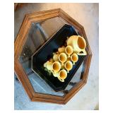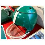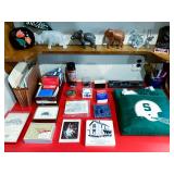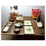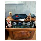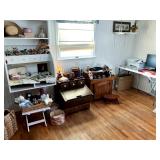 Baskenette by Burlington basket co, triaxial skis, vintage sleds, bathroom vanity, bissell vacuum, Hoover hardwood floor mate, sharp microwave, George Foreman grill, waffle maker, crouton snowman china set, mikasa garden harvest china set, colored glass punch bowls, milk glass, lots of horse figurines, graphopone, pottery, Asian style lamp, candles, metal mirror, mink coat, vintage Michigan state memorabilia, elephants figurines, Disney movies still in plastic, bed sets, tea cups, hp printer and monitor, wooden slant end table, vintage dolls, vintage miniature figurines, vintage singer sewing machine and desk, washer and dryer, vintage dining chairs, tons of Christmas, vintage accordion, lots of vinyl records, vintage wooden doll houses