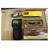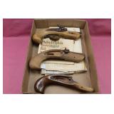 Guns, Ammo, Fishing & Knives: Guns: Henry Arms .45-70 Cal, Henry w/ Scope 22 S/L/LR, Cabela's Inc .54 Cal. Black Powder & Pedersoli .32 Cal. Black Powder; Flint Lock Pistols of George Washington & Robert E. Lee w/ Sterling Silver Accents, Marlin Model 336 30-30 Cal. (1st Year Production), Crescent 1900's 20 Gauge Shotgun, CVA Derringer Kit w/ Extra Stocks, Jukar Black Powder Derringer 45 Cal. Pistol, BB Guns: Power Line Daisy Model 62 .177 cal, Model 44 CO2 .177 Cal, Crossman Air Gun 1077 .177 cal & Ben Franklin Pistol; Brass Black Powder Loading Instruments, Bullet Ball Molds, Desk Top Cannon Signal, Antique Leather/Brass Shot Flask Belt, Lee "Load All" Reloader, Tasco Scope & Mounts, Ammo: (3) 45-70 GOVT, (2) 45 Colt, .44-40, 8.57 JR, 30/30 WIN, Peters #160 RS Slug, 12,16, 20 & 410 Gauge, Remington 38-55, .90 & .440 Roundball Bullets; Box Only - Peters .30 High Velocity, Knives: Fixed & Pocket - Buck, Mossy Oak Set, Ozark Trail, Uncle Henry's, Schrades, Old Timer, Winchester. Kabar & Loads More; NIB Limited Edition Right to Bear Arms Soligen Pocket Knife, Fishing Lures: Heddon, Millsite, Shakespeare, Creek Chub & Etc; Vintage Heddon Deluxe Pal Rod Holders, Early Trappers Basket, Fly Fishing Rods & Holder, Fishing Poles & Reels: Mitchell, Daiwa, Shakespeare, Zepco & Skilcast;