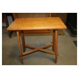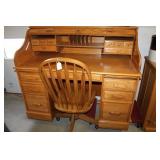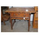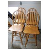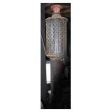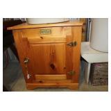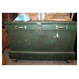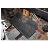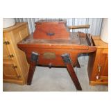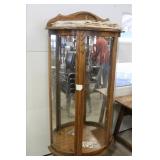 Furniture & Appliances: Danby Mini Fridge, Magic Chef Mini Freezer, Oversized Oak Platform Rocker, (4) Swivel Oak Bar Stool, (2) White Clad Pine Cabinets, Oak Roll Top Desk w/ Rolling Oak Chair, Stackable Wicker Highback Chairs, 4 Shelf Oak Bookcase, Ornate Plant Stand, Early 1800's Primitive Single Drawer Table w/ Diamond Wood Spike Covers, Illuminated Round Front Curio Cabinet, Small Corner 2 Drawer Drop Front Desk, Hall Tree, Metal Outdoor Furniture: Love Seat, 2 Chairs & 3 Side Stands; 4 Outdoor Lawn Chairs, Sewing Machine Bases, Blanket Box in Paint & Etc.