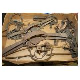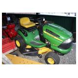 Tools & Equipment: John Deere LA 105 Riding Mower w/42" Deck, Craftsman Self-Propelled Push Mower w/Bag, Craftsman & Wards Chain Saws, (2) Troy-Bilt Rear Tine Tillers, Hand & Yard Tools, Green Bench Vice, XL Micrometer, Many Primitive Tools, Central Machinery 14" Band Saw, Central Pneumatic Sand Blaster on Wheels, Vintage Planes, Craftsman Router Bits & Tool Box, Taps & Dies, Pro-Lift Jack Stand, Cast Aluminum Truck "Side Steps", Large Wood Carpenter's Toolbox on Wheels, Hunting Tree Stands, Metal Ramps, Tarp & More.