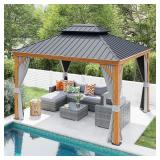 *INCOMPLETE* Backyard Discovery Barrington 16 ft. x 12 ft. Hip Roof Cedar Wood Gazebo Pavilion, Shade, Rain, Hard Top Steel Metal Roof, All Weather Protected, Wind Resistant up to 100 mph, Holds up to 10,100 lbs, 3 boxes