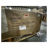- 7-FT COMBO POOL TABLE - Table measures 84-in L x 47-in W x 32-in H; Full set includes two 57-in cues, one set of billiard balls, a triangle, chalk, and a brush. It also includes a table tennis top, two balls, two paddles, two posts, and a net.