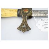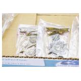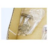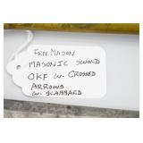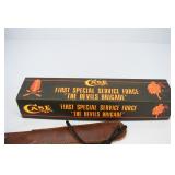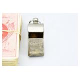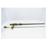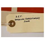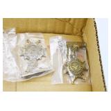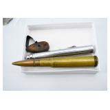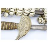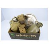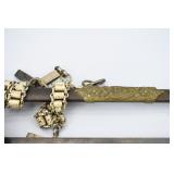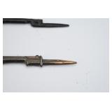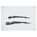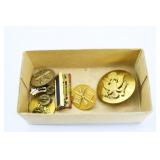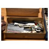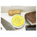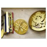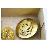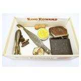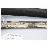 Sporting and Military: Folding, Pen, and Sheath Knives, Factory and Collectible Ammunition, Holsters, Powder Flasks, Gun Sights, Crossman M1 Carbine BB Gun, Military Propaganda Posters, Battleship Maine Lighter Cover, French National Guard Officer Gorget, Pair of U.S. Army Regulation Whistles, Swords, Bayonets, Daggers, Cartridge Boxes, Helmets, Caps, Canteens, Mess Kits, Pins, Badges, Patches, Large Shell, and Other