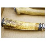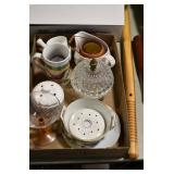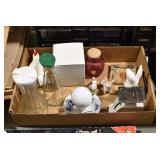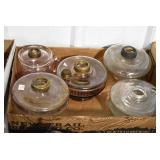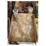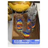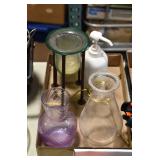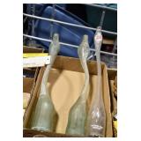 Antique Glassware: 7 Lots of Various Peanut Butter Glasses, Old Bottles, Black Glassware, Moon and Star Glass, Glass Figurines, and Other