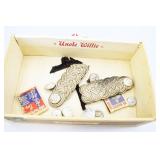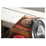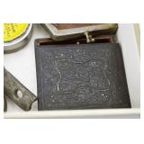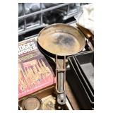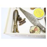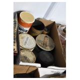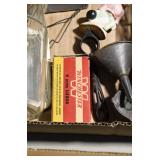 Antiques and Collectibles: Griswold and Other Cast Fry Pans, Hot Wheels Graded Comic Books, 16 Lots of Costume and Other Jewelry, 6 Lots of Vintage Miniature Plastic Animals, Large Amount of Paper Ephemera, Old Photographs, Advertising Items, Vintage Holiday Cards, Stamps, Paper Money, Quilts and Afghans, Framed Prints and Pictures, Large Amount of Vintage Soaps, Large Amount of Wooden Nickels and Wooden Nickel Bills, Vintage Scales, Tinware, Copper and Brass Items, Marbles, Granite and Porcelainware, Old Books, Oil Lamps, Wood Planes, Hatchets, Collectible Vintage Tools, Wall and Mantle Clocks, Advertising Tins, Indian Arrowheads, Lantern and Lamps, Lamp Parts, Vintage Roller Skates, Cast Trinkets, Vintage License Plates, L.C. Smith & Corona Type Writer, Russian Type Writers, Early Americana Items, Christmas Ornaments, Hot Wheels, Matchbox Cars, Antique Toy Cars, and Other