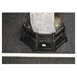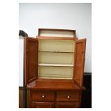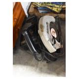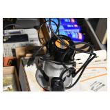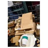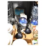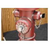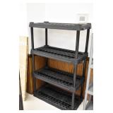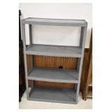Furniture and Related: Large Modern Light Pole, Decorative Fire Hydrant, Vermont Castings Gas Patio Fire Base, 4-Door 2-Drawer Hutch, Large Amount of Shelving Units, Various Stands, Plastic Storage Totes, and Other