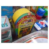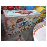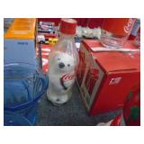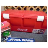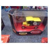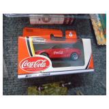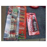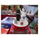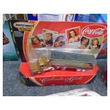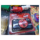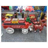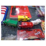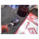 Cast Iron Coke Wagon and Horses, Coke Clothes and Hats, Clocks, Vintage Coke Photographs, Tins, Puzzles, Watches, Cameras, Trays, Bottles, M&M Candy Dispensers, Clocks, Vintage Jewelry & Watches, Trailer Wax Melter, Vintage Style Record Player w/ Cassette, Tiffany Sterling Bracelet, Mr. Christmas Musical Egg, Wood Knives, Coca Cola Match Box Cars, Gift Sets, Key Chains and Knife, 24K Gold Plate, John Deere Gas Pump, Vintage Set of GI Joes w/ Accessories, Framed Prints, Coke Playing Cards, Vintage Linesman’s Phone, Chevy Pocket Watch, Harmonicas, Coke Plush and Bears, Cups and Glasses, Ornaments, Cookie Jar, Brass Handles, Pulls and Hinges, Blankets, Hand Made Wooden Spoons, Set of Gold Flatware, Books, New Hot Curlers, Ladies Clothes and PJ’s, Tall Coke Bottle Ice Cooler, Coke Fishing Set, Full 6Packs of Coke Bottles, Leather Duffle Bag, Gym Bag, Lot of Experimental Coke Cans (some never made it to market), M&M Tins, Canisters, Ornaments, Glasses, Plush, Candles, Curtains, Kids Spiral Car Track, Coca-Cola Tote, Vintage Coke Metal Cooler, Several Boxes of Pokémon Cards, Solid Wood End Tables, Waterfall Cedar Chest, Complete Set of International Coca-Cola TY’s (50 pieces), Many Standard Coke TY’s, Dimmer Switches, Color Changing Cups and Straws, Outdoor Security Light, Vintage Brass Light Fixture from Original Cracker Barrel, Ladies Pirate Outfit, Hair Irons, Cowboy Belt Buckles, Delta Burke Bra Set, Camping Lantern, Solar Radio, M&M Nut Crackers, Coke Dinnerware, New Phillips Stereo w/ 3Disc Changer and Dual Cassette & 4 Speakers, and Lots More with More Coming in Tomorrow, And Our Four for a Dollar / Free Tables.