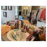 *Address will be posted at 6:00 sale day and will open at 8:00 each day for this sale. Estate Sales by John and Carrie, LLC is honored to have been chosen to host this beautiful property filled with designer clothing, jewelry and accessories as well as quality and antique furniture, vintage treasures, knick-knacks, serving-ware, gorgeous queen-size bedroom set, lots of bedding and linens, 90's diningroom set shows like new with swivel and reclining chairs, several display cabinets, huge selection of colorful vintage glass, beautiful secretary desk, inlaid cherry wood chair, Smart Samsung TV, DVD player, reclining chairs, framed collectible artwork, antique lamps, HUGE Boyd Bears collection, patio set, a garage filled with storage units and cabinets, Christmas collection, cleaning supplies, ladders, Shark vacuum cleaner, and SO MUCH MORE! Follow the orange/blue signs to another great estate sale! |