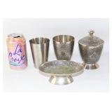 CATALOG TEXT BELOW: 1 - Colson Commander 189 Bicycle VINTAGE 2 - Retro "Drink Dr. Pepper" Soda Bottle Cooler Complete with plug and sandwich tray. 3 - Mid Century Cat Bubble Bath 4 - MId Century Double Desk Lamp 5 - Empolu Italy Green 3-Sided Decanter Genie Bottle 6 - Vintage Ansco Camera with Accessories 7 - Antique Stoneware Crock 8 - Vintage Imperial Glass Smoke Lace Bowl 9 - Vintage Metal Fishing Minnow Bucket Insert 10 - Jim Beam American Basic Advertising Mirror 11 - 2 Vintage Hazel AtlasRed Pyrex Dutch Skaters Bowls 12 - New Old Stock Planters Peanut Counter Display Jar 13 - Beautiful Figurine 14 - West Bend Flavo-Matic Aluminum Coffee Perculator No power cord. 15 - Budweiser Cups and Mug 16 - Planters Peanuts "Mr. Peanut" 75th Anniversary Jar 17 - 3 Budweiser Beer Stein Mugs 18 - 1950's Peoria Cake Plate Carrier 19 - Indian Head Log Cabin Syrup Jar/Bottle with Lid 20 - 2 Jim Beam Liquor Decanters-Harold's Club Reno 21 - 3 Jim Beam Liquor Decanters 22 - Card Games Book, Poker Chips, Jacks & More 23 - Imperial Glass Colonial Lady Glass Bell WOW 24 - Vintage Dragon Dominoes & 25 - El Paxo Tobacco Tin & Vintage Wood Checkers Chips 26 - MCM Tomato Sugar Bowl & Salt/Pepper Shakers Set 27 - Burley & Bright Half and Half Tobacco Tin 28 - Vintage Playing Cards 29 - MCM Aluminum Quick Cube Ice Cube Trays 30 - Antique Blue Band Stoneware Crock 31 - Vintage Brownie Junior Camera 32 - Vintage Necklace 33 - Glass Flower Frog 34 - Vintage Marbles and Glass Candy Jar 35 - Vintage Diana Camera Kit 36 - Vintage Table Cigarette Lighter Omscolite Automatic Superlighter 37 - Vintage Panasonic Transitor Radio 38 - 2 Vintage Fire King White D Handle Coffee Cups 39 - Vintage Puppy Dog Chalkware Figurine 40 - Vintage Pickett Slide Rule 41 - 2 Vintage Ashtrays 42 - Set of 4 Bascal Vintage Aluminum Cups 43 - Vintage Polaroid Camera with Extras 44 - Vintage Automobile Fender Skirts 45 - Planter's Peanut 75th Anniversary Mr. Peanut Jar 46 - Vintage Kromex Glass Relish Dish 47 - 2 Vintage Planters-Royal Copley 48 - 2 GE Milk Glass Mixing Bowls 49 - MCM Sunburst Aluminum Pitcher and 10 Tumblers 50 - Vintage Games 51 - Vintage Radio Shack Camaro Z28-E R/C Car 52 - Child's Playset, Instument and More 53 - MCM Kentucky Derby Horse Glasses with Rack 54 - Groovy Retro Pedestle Cups 55 - 3 Vintage Toy Guns and Horse 56 - Vintage Touring, Rook and Uno Card Games 57 - Socket Tool Set 58 - Wagner Ware Cast Iron Skillet 59 - Vintage Stoneware Child's Playset 11 Peaces Wheat 60 - Lynn Lupetti Puzzle 61 - Cut Glass Dish, Butter Server and Jelly Jar 62 - Depression Glass Divided Dish 63 - 75th Birthday "Mr. Peanut" Planters Peanut Jar 64 - Art Deco Pottery Vase marked USA 65 - Aluminum Bowls, Ashtray Set and More 66 - Retro Yellow Metal Bread Box 67 - Mid Century David Douglas Coffee Glass Karafe Appears new in box 68 - Retro Smoked Glass Bowl & 3 Glass Balls 69 - Dormeyer Silver Crest Retro Chrome Mixer Dormeyer Silver Crest 70 - 2 Budweiser Beer Steins Mugs 71 - Vintage Corning Ware Blue Cornflower Coffee Pot 72 - Carnival Glass Bowl, Smoked Ribbed Vase-Fish Bowl 73 - Men's Bow, Boa Ties and Cuff Links 74 - Syroco Gold Burwood Wall hangers 75 - Vintage Hatchet 76 - 2 Vintage JH Chalkware Military Figurines 77 - 2 Vintage Cigarette Lighters -Bowling 78 - Native American Pottery Bowl Looks like Hopi to me, but I am no expert. 79 - Vintage Pink McCoy Pottery Planter 80 - 1914 The Calendar of Golden Thoughts 81 - Ezra Brooks Street Car Liquor Decanter 82 - Pottery Bowl, Vase, Kids Glasses & Plate 83 - Wagner Ware Cast Iron Skillet 84 - Vintage Wood & Rope Foot Rest 85 - Griffin Oak Shoe Shine Box and Contents 86 - Lot of Assorted Items-All for one money! 87 - Hand Made Wood Jewelry Keepsake Box 88 - Large Lot of Hand Made Lace Doilies and More 89 - Vintage Singer Sewing Machine 90 - Vintage Coleman Lantern 91 - Galvanized Metal Fishing Lure Minnow Bucket 92 - Vintage McCoy Pottery Flower Cookie Jar 93 - 5 Beam's Choice Collector Edition Liquor Decanters 94 - Antique Ladies Dresses 95 - Military Foot Locker 96 - Retro Coca Cola Soda Picnic Cooler with Tray 97 - Miller High Life Wildlife Advertising Mirror No 1 98 - Sebring Ohio MCM Canster Set 99 - Dabs Mid Century Amber Glass Decanter Bottle 100 - Jim Beam Brown Horse LIquor Decanter 101 - Jim Beam Black Horse Liqquor Decanter 102 - Jim Beam Gray Horse Liquor Decanter Bottle 103 - Wild Turkey Whiskey Liquor Decanter Bottle 104 - Jim Beam Liquor Decanter Bottle 105 - Lockheed Vega 5B Die Cast 1st Edit Airplane 106 - Vintage Goodies Lot 107 - 3 Signed Gene Clevenger Wood Carved Shoes 108 - Pabst Blue Ribbon Beer Wildlife Mirror 109 - Pabst Blue Ribbon Beer Wildlife Mirror 110 - Miller High Life Beer Wildlife Mirror 111 - 2 Antique Draw Knifes Knives 112 - Trowelsand Caulk Gun 113 - Lot of Assorted Glasses and Cup 114 - RARE Collector's 1989 Ducks Unlimited Decanter 115 - 1960's Nomura Japan Military Combat Jeep Toy 116 - Small Honey Bottles Jars 117 - 3 Vintage Corning Ware Blue Cornflower Casseroles 118 - 1950's MCM Viking Ship TV Lamp 119 - Vintage Polaroid Automatic 100 Camera w/Extras 120 - Assorted Dishes 121 - 6 Piece Milk Glass Lot 122 - Vintage Jewelry Lot 123 - Vintage Carols Books 124 - Rather "Dark" Vintage Ashtray 125 - 2 Mid Century Ladies Dresses 126 - 3 Vintage Cameras 127 - Vintage FIre King Casserole Dish with Lid 128 - Vintage Tooled Leather Ladies Purse 129 - Vintage Chips and Dip Server 130 - Lead Crystal Farm Rooster 131 - Wild Turkey Liquor Decanter Mini No 1 132 - Vintage Carro Game Board 133 - Vintage Wooden Game Board 134 - Mid Century Key Wall hangers 135 - Adorbs Kitty Cat Cookie Jar 136 - Lot of 7 Milk Glass Vases 137 - Set of Mount Clements Mildred Pattern China 138 - Vintage Jewelry Box and Contents 139 - Vintage Metal Roller Skates 140 - Marx Midge Spring Race Car & Sapin Stake Truck 141 - Vintage Camera with Leather Bag 142 - Vtg Electric Roadways Sports Car Rally Set Complete with power box, track and 2 cars all in original box!! 143 - Lot of A