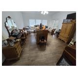 Living room, Kitchen, Dining room, 3 bedrooms, Garage Farmhouse Dining Room Set; Corner Cabinet; Whirlpool Washer/Dryer; Cast Iron Cars, Trucks, Trains, Tractors and Animals; Marshall Ceramics; Pyrex; Enamelware; Pewter; Metal Lawn Chairs; Collector Knives; Colt Zippo Lighters; Limited Addition Colt Bowie Knife (Numbered); Linens; Quilts; Mackenzie Childs Figures; Christmas Collectables; Dept 56 Christmas; Village Full Iron Bed; Heavy Post Queen Bed; Designer Women's Clothes; Signed pictures by Chuck Norris, Reba McEntire and Don Knotts Marshall Pottery Pots, Pans and Enamelware Farmhouse Dining Table; 5 Slat Chairs and Bench Farmhouse Antique China Cabinet Collectable Pitchers Farmhouse Corner Cabinet Cast Iron Animals Franklin Mint (12) Sterling Silver Western Lawmen Badges-One badge plated with 24k Gold Franklin Mint Collector Knifes Wild West Set of 6 In Original Case Samuel Colt Signature Bowie with Sheath - 1995 Limited Edition #236 of 1000 Zippo 1998 Samuel Colt Autographed Lighters in Box McKenzie Childs Christmas Ornaments Cast Iron Folklore Figurines Vintage Ice Cream Maker MCM Telephone Table with Seat Pyrex, Corningware, Pottery, Depression Glass, Vintage Ribbed Glass Refrigerator Dish 1940s Small Antique Dining Table with Sliding Extensions; Wicker Chairs and Bench Racheal Ray Dinnerware Rosenthal China Germany Handcrafted Walnut Linen Press Hermle Black Forest Grandfather Clock Rolltop Desk Reba McEntire Signed Photo Chuck Norris and Don Knotts Signed Photos Antique Walnut Vanity Desk Trifold Mirror Women's Designer Clothes Brass Bed (Full) Vintage Ironing board and irons 4-Poster Queen Bed McKenzie Childs Bellhop Table Whirlpool Washer and Dryer Enamelware pans Antique Washboard US Navy Gore-Tex Camouflage Parka Cast iron cars, Trains, Tractors / Die-Cast Cars Dept 56 Christmas Village Patio Furniture - Metal Rustic Lawn Chairs, Wood Chairs, Tables, Porch Swing Linens / Quilts Rafael Palmeiro 500th Home Run / Nolan Ryan Tribute Victor 1906 Victrola VV 1-70 Singer Sewing Machine International Silver Co. Pennsylvania Railroad Silver Soldered Sugar Dish International Silver Co. Silver Soldered Conrad Hilton 8 Oz Teapot Large Farmhouse Tabletop Closeup Linens, Pillows and Quilts Vintage Rare Christmas Vintage Pedal Tractor Green Lawnmower |