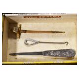 Jewelry: Sterling 1941 America First Committee Ring, Mothers Cross Necklace w/1794-1824 Date Inscribed on Reverse Side, Various Sterling Rings, 10K 1965 LHS Lakeland High School Class Ring, 10K Childs Ring, Wrist Watches, and Other Invecta Watches: Invecta Chronograph Pro-Driver Model 13686 Mast of the Oceans Watch, Invecta Chronograph Coalition Forces Model 22277 WR-300-MT Watch, Invecta Chronograph Subaqua WR-500-MT Watch, Invecta Excursion Model 10906 WR-200-MT Watch, Invecta Excursion Model 25719 WR-500-MT Watch, Invecta Reserve Venom Model 20405 WR-1000-MT Watch, Invecta Subaqua Model 26277 WR-300-MT Watch, Invecta Model 23991 WR-100-M Watch, Invecta Reserve Model 21641 WR-500-MT Watch, Invecta Model 17340 No. 002494 Watch, Invecta Chronograph Subaqua Model 23934 WR-500-MT Watch, and Invecta Force Model 19183 WR-300-MT Watch Pocket Watches/Wrist Watches/Compass: Elgin Watch Co. Marked George Cassaday Open Face Pocket Watch w/Wadsworth Watch Case, Elgin Watch Co. Open Face Pocket Watch w/Philadelphia Watch Case, Elgin Watch Co. Open Face 7 Jewels Seepter Watch Case Co. Pocket Watch w/Chain and Knife, Elgin Watch Co. Open Face 7 Jewel Pocket Watch w/Silverode Watch Case, Wittnauer Compass, 14K Gold Filled Waltham Watch Co. Wrist Watch, Elgin Watch Co. Open Face Pocket Watch w/Engraved Fahy’s Watch Case (Missing Key), Elgin Watch Co. Open Face Pocket Watch w/Deiber Watch Case, Waltham Watch Co. Open Face Pocket Watch w/Engraved Silverode Watch Case, Elgin Watch Co. Open Face 15 Jewel Pocket Watch w/Engraved Wadsworth Case, Elgin Watch Co. Open Face Pocket Watch w/Philadelphia Watch Case, Elbon Watch Co. 17 Jewel Open Face Pocket Watch w/Winton Watch Case, 14K Elgin Watch Co. 15 Jewel Closed Face Pocket Watch w/Engraved Keystone Watch Case, and Doxa Swiss Made Cased Pocket Watch w/1914 Iron Cross Attached Bronze Figures: Pair of Bronze Bust Bookends of Composer Richard Wagner, Heredities Cold Cast Bronze “Naughty Dog”, and Vintage Crucifix Bronze Statue of Jesus By Milo Camel Bone Pictures: (3) Antique Persian Camel Bone Hand Painted Gaming/Horseback Scene, Persian Indian Hand Painted Mughal Camel Bone Picture, Persian Camel Bone Hand Painted Hunting Scene, Antique Persian Suratgari Camel Bone Hunting Scene in Marguetry Mosaic Khatam Frame, and Antique Persian Suratgari Camel Bone Hunting Scene in Marguetry Mosaic Khatam Frame Cast Match Case Holders: Double Drum Match Case Holder, M.A. SUY D. AM & Co. No. 11 East Town Street Telephone 180 Match Case Holder, Michigan Stove Co’s Stoves are the Best Detroit-Chicago-Buffalo Match Case Holder, Horace Greeley Match Case Holder Made During 1872 Presidential Campaign, Ornate Match Case Holder, Circa 1870 Cast/Metal Double Match Case Holder w/Rabbit, Game Bird, Possibles Bag, and Gun, Free Standing or Wall Mount Match Case Holder, Unusual “Safety” 3-Piece Match Case Holder, Match Case Holder, Very Ornate Bronze/Iron Helmet Match Case Holder, Wall Mount Match Case Holder, and O. Parker Pat. April 14 1833 Match Case Holder Inkwells: Jennings Brothers Bronze Inkwell, Jennings Brothers Brass Inkwell, Brass Double Inkwell, and Napoleonic Brass/Marble Double Inkwell w/Cherub Figure Railroad Lanterns and Lamps: B&O Handlan St. Louis 4-Way Kerosine Switch Lantern w/3 Blue Shades, 1 Red Shade, Mounting Bracket and Dressel Burner, Complete Tin 3-Shade Kerosine Signal Lamp w/Ruby, Blue, and Clear Rotating Lenses, Complete Heavy Tin Hand-Held Kerosine Lamp w/Heavy Fractured Glass Reflector and Multi-Colored Lenses, B.R.(M) Railroad Signal Lamp in Original As-Found Condition w/Clear Glass Lense and Correct Burner, Dressel 4-Way Electric Switch Lantern w/3 Orange Lenses, 1 Red Lense, and Mounting Bracket (Electrified for Display Purposes), Complete Large Vintage Heavy Spotlight Kerosine Lantern w/White Paint and Kerosine Burner, 14½” High Large Vintage Heavy Spotlight Kerosine Lantern in Original Condition w/Burner, and British Railroad Adlake 4-Way Electric Signal Lamp w/3 Blue Lenses, 1 Red Lense, and Mounting Bracket Animal Traps: Victor Double Long Spring Trap, Triumph Trap Co. No. 415-X High Grip Toothed Trap, Blacksmith Made Toothed Bear Trap w/Touchmark G.S., and Other Various Animal Traps Collectible Knives: 3-Knife Gurka (Kukri) Knife w/Sheath, U.S.M.C. Ka-Bar Knife w/Sheath, WWII Theater Knife, Ideal Arkansas Toothpick Knife w/Sheath, WWII German Dug Fighting Knife, German 98K Dug Relic, Case XX Tested Knife, Schrade Old Timer No. 152 Knife w/Sheath, Remington Knives, Large Amount of Various Folding, Pen, and Sheath Knives, and Other Military Related: Hand Stitched 42 Star Flag, 6¾”x10” Hand Stitched 48-Star Flag, Swords, Military Pins, Badges, Medals, Buttons, and Patches, WWII German Officer Collar Board, U.S. Marked Nordac Mfg. Leather Holster, Large Shells, Flags, Old Military Photographs, German Military Field Phone Case, Childs Non-Combat Gas Mask, German Arm Badge, 1939 German Iron Cross, Pair of German Late War Arm Bands, Military Trenching Shovels, 3rd Reich NSKOV Member Badge, German NSKK Drivers Sleeve Insignia, Pre WWII Helmet Membership Pin, Frederick the Great Prussian Commemoration Broach, WWII German GAU Tag “Tinnie Badge”, Third Reich NSBO Party Pin, 1933 German Iron Shirt Pilgrimage Cross Tier Pin, Flight Glasses w/Case, German P-38 Leather Pistol Holster, Military Uniform Coat, Military and Vintage Ammunition, Vintage Powder Horns and Flasks, and Other Winchester Collectibles: Winchester Hatchet, Winchester Flashlights, Winchester Hand Plane, Winchester No. 1002 Monkey Wrench, Winchester Roller Blades, Winchester No. 3075 Hand Plane, Winchester Gun Oil Target Can, Winchester No. 6605 Mashie Golf Club, and Other Sportsman and Fishing Related: Game Commission Patches, Modern Ammunition, Gun Powder, Marbles Cleaning Rod, Gun Research Books, Cleaning Kit, Gun Catalogs, Leather Holsters, Vintage Fishing Reels, Vintage Fishing Lures, Travel Fishing Pouch, Matching No. 765 1895-1995 Resident and Non-Resident Hunt