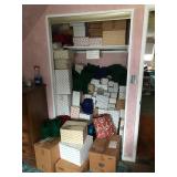 This home is loaded with brand new items, never used, and still in boxes. A Large collection of princess house crystal, new iron enamel pans, and roaster. Grill tops, large collection of silicon bakeware, small butcher block island. Small and large freezers, vintage stereo in cabinet, large TV and cabinet. Many holiday items, lots of vintage china and glass ware. Upright piano, radios, costume jewelry. Pyrex, new serving dishes, lamps, tools, and exercise bike. Military, boys scout, and girl scout memorabilia. Christening gown and so much more.