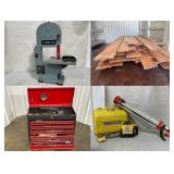= Craftsman Toolbox w/ Contents = 8” L x 4.75” W = Vintage Reservable & Speed Reducing Screwdriver = Snap-on 16 Track Radio/ CD Player = Snap-on Thermostat = Collection of Various Sizes of Drill Bits