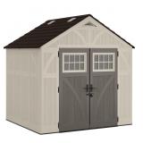 (185). Suncast 8' x 7' Heavy-Duty Resin Tremont Storage Shed with Reinforced Floor, Skylights for Natural Light, Lockable Double Doors, Cream
