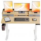 Claiks Standing Desk with Drawers, Stand Up Electric Standing Desk Adjustable Height, Sit Stand Desk with Storage Shelf and Splice Board, 48 Inch, Natural