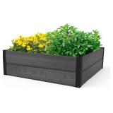Keter 48" X 48" inches Wood Look Raised Garden Bed, Durable Outdoor Herb Garden Planter for Vegetables, Flowers, and Succulents, Grey