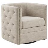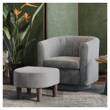 LINSY Swivel Accent Chair, Velvet Small Barrel Chair with Ottoman, 360 Degree Swivel Armchair for Living Room Bedroom Nursery Office (Gray)