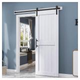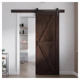 FREDBECK 30in x 84in Brown Barn Door with 5ft (60inch) Barn Door Hardware Track Kit and Handle Included, Double Surfaces,Simple Assembly is Required,K-Frame,Coffee