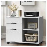 DUMOS Lateral File Cabinet with 3 Drawers, Rolling Wooden Printer Stand Under Desk Storage Organizer with 4 Wheels Adjustable Shelf for Office Home, White