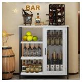 27.5'' Coffee bar Cabinet with Storage, Small Corner Coffee Stand Station for Kitchen, Farmhouse Dining Hutch Cabinet, Multipurpose Side Console Table (White)