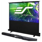 Elite Screens ezCinema 2 Projector Screen, 84-inch 16:9, Manual Floor Pull Up Scissor Backed Portable Home Office Classroom Front Projection + Carrying Bag