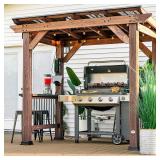 (13) Backyard Discovery Saxony 8' x 5' Cedar Wood BBQ Grill Gazebo Pavilion with Hardtop Galvanized Steel Roof, Bar Tops, Powerport, Snow Support, Wind Resistance, Cook Station for Outdoor Patio or Deck - 2 boxes