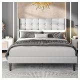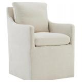 - Upholstered with a durable Dove Grey Linen Look Fabric