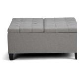 SIMPLIHOME Harrison 36 inch Wide Transitional Square Coffee Table Storage Ottoman in Dove Grey Linen Look Fabric, Assembled, for the Living Room and Bedroom