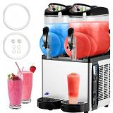 - 24L Large Capacity Commercial Slushy Machine: Equipped with double tanks which totally have a capacity of 24L (6.43 Gallon),the large storage space can omits repeated production process,saving your time and energy.Each tank 12L (3.2 Gallon)can produces around 50 cups (7oz/cup) frozen margaritas. The feed outlet switch adopts a pressing design,the auto-rebound handle is equipped with high tenacity springs,much convenient operation without leaking troubles.