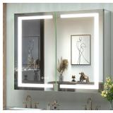 (68) TokeShimi 40x32 Lighted Medicine Cabinet for Bathroom with Mirror and Electrical Outlet Anti-Fog 3 ColorsTemperature Dimmable Surface or Recessed Mount for Bathroom Storage