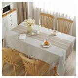 - [Materials and Benefits] JIALE tablecloths are made of new upgraded high-quality heavy-weight cotton linen fabrics, non-slip and wrinkle-free, not easy to scratch. Match with the additional waterproof coating process. Make the tablecloth splash-proof, waterproof and stain-proof. While better protecting your dining table, it also has a good dropping effect.