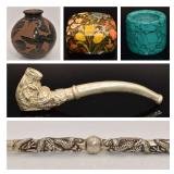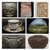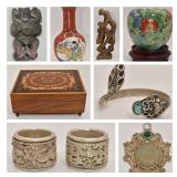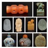 Welcome Home to CTBids! We put together an excellent selection of items for you! Start exploring and discover the deals for yourself! Bidding on ALL items starts at $1! Get ready for an exciting online auction! Bidding starts at just $1.00 on a stunning collection of unique items, including an Abstract Carved Soapstone Figural Sculpture, an Alaskan Inuit Carved Bone Billiken Figure, a 14K Yellow Gold 40 Carat Green Jadeite Buddha Pendant, an Antique Korean Celadon-Tone Crane-Themed Ceramic Teacup, an Asian Silver-Tone Brass Elephant-Form Trinket Box, an Aztec Carved Stone Bird Figure, a Blue & White Chinoiserie Porcelain Dish, a Chinese Blue & White Cinnabar-Style Figural Snuff Bottle with Nephrite Jade Top, and much more! Don't miss out on these rare treasures! Browse and bid on unique and everyday treasures at Loudoun.CTBids.com
