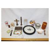 CATALOG TEXT BELOW: 1 - Uranium Glass Creamer 2 - Vintage A & W Root Beer Mug 3 - Dryden Divided Pottery Dish & Cake Platter 4 - Assorted Gold Depression Glass 5 - Assorted Brass Candle Holders and Vase 6 - Assorted Pink Depression Glass Items 7 - 2 Brass Wall Candle Sconces 8 - Vintage Dog Figurine 9 - Assorted "Post Card Trays" 10 - Poppy Trail Cape Cod Soup Bowl 11 - Fenton Amber Hobnail Tootpick & More 12 - Purple Slag Pitcher shaped Toothpick Holder 13 - Depression Glass Drawer Hardware 14 - Set of Haviland (Limoges,France) Ladore serv 8 Haviland Limoges Ladore 15 - Set of Thompson Pottery Dinnerware 16 - Assorted Gold Depression Glass Plates & Bowls 17 - Service for 4-Tienshan Fine China "Magnolila" Tienshan Fine China "Magnolila" 18 - Pink Depression Glass Butter Dish & 2 Bowls 19 - Assprted Depression Glass 20 - American Fostoria Divided Dish, Spoon Rest & More 21 - 5 Anchor Hocking Pink Prismatic Queen Mary Tumbler 22 - 7 Pink Tumblers 23 - 4 Fire King & McKee Jadeite Saucers 24 - Poppy Trail Peach Blossom Butter Dish 25 - Assorted Glassware 26 - Manhattan Pink Depression Glass Bowl 27 - 5 Smoking Tobacco Pipes, Brewster, Crown Duke 28 - Set of Noritake Fine China (Pre Ware Japan) Service for 12 plus many finishing pieces. Great condition. 29 - Theodore Haviland, Apple Blossom USA Theodore Haviland, Apple Blossom USA 30 - Large Lot of Assorted Trophies 31 - Folding Camping or Lawn Chair 32 - Bookcase Bookshelf 33 - Solid Wood Storage Cabinet 34 - "From the Cradle to the Grave" Family Record 35 - Metal Storage Cabinet 36 - White Storage Cabinet No 1 37 - White Storage Cabinet No 2 38 - Antique Cigar Making Form 39 - Candlestick 40 - Large Lot of Assorted Tools 41 - 10 Commandments & Wall Hanger 42 - Lot of Vintage Slides 43 - Vintage Planters and More 44 - Chinese Flowering Cherry Blossom Hard Stone Tree 45 - Ball Perfect Mason Jar 46 - Carburator, Tools, Hardware and Misc 47 - Stoneware Crock 48 - Antique Porcelain Miniature Lamp 49 - Lenox China Plate 50 - Vintage Kerosene Can 51 - Assorted DVD's Grantchester Series still sealed 52 - Vintage Wooden Toy 53 - Aircraft Airplant Altimeter Guage 54 - Container of BB's 55 - Buck Knives Knife and Vintage Straight Razor 56 - 9 NEW Sealed Bottle of Prosta Stream Capsules Prosta Stream Capsules for Prostate Support, Prostastream Dietary Supplement with Enhanced Formula for Men, 120 Capsules Total (No ratings yet) About this item Supports prostate health and function Promotes healthy urinary flow and function Contains a blend of premium ingredients for maximum efficacy Convenient 9-pack bundle for a long-term supply Formulated based on in-depth Prostastream prostate reviews and research 57 - 7 Bottles of Supreme-Blood Sugar Support Capsules 58 - Bearington Bear and Boyd's Bunny Rabbit 59 - Power Strips, Cords and More 60 - Lot of Linens 62 - Lot of Tools, Hardware and more 63 - 7 Bottles of Titan Blast XR 64 - Milk Crate and Plastic Storage Container 65 - Lot of Books 66 - "The Hamilton Collection" Porcelain Doll 67 - Lot of Books 68 - Wood Framed Mirror 69 - Lot of Picture Frames 70 - Glassd and Metal Vanity Set 71 - 6 Bottles of Mid Defense Capsules 72 - Pair of Antique Oil Lamps with Reflectors 73 - Stanley Tools Mitre Box and Wood Saw 74 - New Hamilton Beach Electrric Oven 75 - Vintage Bamboo Fishing Pole 76 - Set of Pfaltzgraff "Heirloom" Stonware Dinnerware Pfaltzgraff 77 - Lot of Embroidery and Sewing Notions 78 - Set of Phaltzgraph Winterberry Dinnerware 79 - Pfaltzgraph Canister Set "Heirloom" There are a couple of chips of these. 80 - Pfaltzgraph "Heirloom" Soup Tureen with Ladel 81 - Buick Car Guage Assembly 82 - Lot of Religious Wall Hangings and Cross 83 - Lot of 3 Garden Gnomes 84 - Modeling Street Signs Traffic Sign Set 85 - Kenmore Buttonholer 86 - Angel Candle 87 - Vintage Corning Ware Coffee Pot 88 - Beautiful Porcelain Vase with Flowers 89 - Vintage Chalkware Bear Family 90 - Lot of Assorted Elvis Presley Ephemera 91 - Dominoes and Playing Cards 92 - Crucifix 93 - Vintage Chalkware Kitty Cat Faces 94 - American Cut Glass Lot 95 - Set of Oneida Stainless Silverware Set in Chest 96 - Paper Easter Egg & Vintage Annie Doll 97 - Holy Bible in Wooden Box 98 - Vintage Christmas Angel Planter WOW 99 - Vintage Ephemera of all types 100 - Vintage Chalkware Bunny Rabbits and Carrot 101 - Mid Century Flying Seagulls 102 - Set of Organdie Vernonware California USA Organdie Vernonware California USA 103 - Lot of Garden Tools, Saw, Fishing Stool, Level 104 - Brass & Wood Walking Cane & American Flag 105 - Antique Cast Iron Sad Iron 106 - In Drawer Jewelry Trays 107 - 5 Computer Games in One Football 108 - Gorgeous Quilt Top 109 - Manhattan Glass Cake Stand 110 - Lot of 3 Drills, Socket Set and More 111 - Vaseline Glass Sugar Bowl 112 - Vaseline Glass Juice Reemer 113 - Service for 4-Johann Haviland Bavaria German Johann Haviland Bavaria German 114 - Set of 115 - Vintage Houston Astros Baby T Shirt 116 - Vintage World War II Items 117 - Antique Celluloid Black Americana Salt/Pepper 118 - Vtg Viking Glass Footed Handkerchief Vase Green 119 - Mid Century Wall Hanging Sconces 120 - Mid Century Wall Sconces 121 - Signed Art Work 122 - Mid Century Home Interiors Syroco Gold Hangers 123 - 2 Urns 124 - 2 Oriental Serving Trays 125 - Vintage Scrap Book with Contents 126 - Vintage Wooden Planter 127 - Vintage Nativity Set 128 - Vintage Paper Nativity 129 - Lot of Vintage Cat Figurines and Mug 130 - Vinage Pyrex bowl 131 - "The Jazz Band" Toy Accordian 132 - Ceramic Nativity Pieces 133 - Vintage Ladies Handkerchiefs Hankies 134 - MId Century Mushroom Wall Decor GROOVY 135 - 4 Hold Bibles 136 - Vintage Chalkware of Indian Heads 137 - Vintage Baby T-Shirts ADORBS 138 - Jar 139 - Footed Fruit Bowl 140 - Hand Made Lace 141 - Baby Shoes 142 - Baby Shoes and More 143 - Assorted Angel Figurines and Statues 144 - Sewing Basket and Sewing Notions 145 - Vintage Christmas Decor 146 - Little House on the Prairie Bonnets 147 - Trunk full of Baby Cloths 148 -