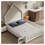 - Unique House Roof Design: This floor bed features a whimsical wooden house-shaped roof, encouraging imaginative play and creating a delightful sleeping space for young explorers.