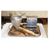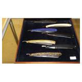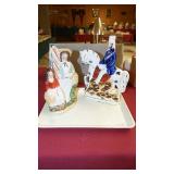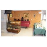 | OAK: MODERN LIGHTED CURIO CABINET, 1 DOOR 3 DRAWER COMMODE. MAHOGANY: LADIES DROP FRONT DESK, VICTORIAN (CROTCH) LINCOLN ROCKER WITH CARVED CREST AND ARMS. WALNUT: VICTORIAN MARBLE TOP LAMP STAND, WINDSOR STYLE ROCKER. MAPLE: BURL KNOT SLAB COFFEE TABLE. PINE: MODERN COMMODE. OTHER FURNISHINGS: 21" SLAG GLASS HANGING DOME LAMP, ARTS AND CRAFTS PERIOD REVERSE PAINTED SHADE TABLE LAMP. SINGER FEATHERWEIGHT #221, ZENITH TRAN-OCEANIC ROYAL 7000-1 RADIO. CLOCK: LeCOULTRE ATMOS HERITAGE ROUND, (7)BOXES CUCKOO CLOCKS (PARTS AND WEIGHTS), CLOCK CASES AND PARTS. (264) PIECES ALFRED MEAKIN STAFFORDSHIRE "FAIR WINDS" CHINA (TO BE SOLD AS ONE LOT), 6 1/2" ROYAL WORCHESTER FIGURE, MURANO GLASS SWANS AND PERFUME BOTTLE, PAIR HEISEY "EMPRESS" SAHARA CANDLESTICKS, THREE STAFFORDSHIRE FIGURES, HAND PAINTED NIPPON PIECES, 10" ROYAL BONN ARTIST SIGNED VASE, 4 1/2" AMBERINA VASE, MILLEFIORE PERFUME BOTTLE, "ROMA" ALABASTER DESK INKWELL. VINTAGE AND COSTUME JEWELRY, 14K, 10K AND STERLING FASHION RINGS WITH PRECIOUS STONES. 14K GOLD: MEN'S SELVA (SWISS) 21J POCKET WATCH, BRACELET, 7 1/2" BRACELET (7.9dwt), NECKLACE WITH TRI-COLOR HEART PENDANT, NECKLACE WITH BLACK PEARL SPACERS. STERLING: LORGNETTE EYEGLASSES, NECKLACES, EARRINGS, BRACELETS, PINS, ETC.. COINS INCLUDING MORGAN AND PEACE SILVER DOLLARS, WALKING LIBERTY, FRANKLIN AND KENNEDY HALF DOLLARS, ETC.. TIN & DAGUERREOTYPES (ONE IN BLUE ORNATE LEATHER BOOK-LIKE CASE), COLLECTIONS OF STRAIGHT RAZORS (CASE XX ETC..) AND NOVELTY CIGARETTE LIGHTERS. (2)LADIES BUNNY FUR JACKETS, SIZE LARGE "COACH" LEATHER JACKET AND FULL LENGTH MINK COAT, (4)BLUE SWIRL COFFEE POTS AND (1)GREEN SWIRL PAIL AGATE WARE, (21)STONEWARE CROCKS OR JUGS INCLUDING A 3 GALLON WITH COBALT FLOWER AND 2 GALLON JUG "SHEEHAN 353 RIVER STREET TROY, N.Y." (REPAIRED HANDLE). (4)PETER OMPIR SIGNED TOLEWARE TRAYS, (8)PIECE STONEWARE WASH SET, "DAVIS & KIDDERS" QUACK BOX, (2)MINERS CARBIDE LIGHTS (U.S. JUSTRITE & BRITISH PREMIER), WWII "OPA" BLUE & RED RATION TOKENS, REESE "LEVEL-ALL" TRAILER LEVEL, CAST IRON NAUGHTY NELLIE BOOT JACK DOORSTOP, (2)TELEGRAPH KEYS (1 MARKED KARAS ORTHOMETRIC), JUBILEE OOGA HORN. (6)IRON WAGON WHEELS. 11 PIECE WILLOWARE CHILD'S TEA SET, BASEBALL BATS & GLOVES, EARLY POGO STICK, 32" MODEL BOAT "MV PROGRESS-5 ROTTERDAM" IN DISPLAY CASE. 50th ANNIVERSARY EDITION PIPER CUB #K63 BALSA WOOD MODEL (NEW) c.1985, REMCO #707 BATTERY-OP ELECTRIC FALCON AIRPLANE, (11)MADAME ALEXANDER INTERNATIONAL DOLLS WITH BOXES, TIN WIND-UP HUKI-KIENBERGER c.1912 "BILLIARD PLAYER", PAIR HALCO TOY PISTOLS WITH DOUBLE "WESTERN PIONEER" HOLSTER SET IN BOX. "THE THING" BATTERY-OP COIN BANK, (2)SPACE ROCKET AND (2)APOLLO 8 AND MOON WITH BOXES COIN BANKS, LARGE LOT NASCAR COLLECTIBLES (MOSTLY DALE JARRETT #88). TRAINS AND RELATED: LIONEL #1095W FREIGHT TRAIN SET (COMPLETE WITH COAL ELEVATOR, SWITCHES, TRACK, SEVERAL TRAIN BOXES AND ORIGINAL SHIPPING BOX, #5840 MARX TRAIN SET WITH BOX AND ACCESSORIES, 1927 LOCOMOTIVE CYCLOPEDIA 8th EDITION, LARGE PHOTO #271 D&H TRAIN, ALARM CLOCK WITH ETHNIC PORTER CARRYING BAGS "VACATION ON THE UNION PACIFIC RAILROAD" 1939-40. D&H RAILROAD LANTERN. NICE SELECTION OF OLD MARBLES, DURHAM AND JOHN DEERE TOY SNOWMOBILES, IDEAL BARRACUDA SLOT CAR, 45 RPM RECORDS, SIZE 13 ROLLER BLADES WITH ACCESSORIES, BINOCULARS, CAMERAS INCLUDING ROLLEI 35S WITH CASE, NIKKORMAT 35mm WITH NIKON ZOOM NIKKOR AUTO LENS 80mm-200mm, ETC... SCHULTZ & DOOLEY UTICA CLUB STEINS, ADVERTISING TINS, 30" OCTAGON STOP SIGN, 53"x10 1/2" GM GOODWRENCH SERVICE PLUS TIN SIGN, (3) ONE QUART FALCON MOTOR OIL CANS. RED WINGS ITEMS INCLUDING MEN'S (XL)JERSEY SIGNED BY MARK MOYER #44, MEN'S (M)SWEATSHIRT AND MEN'S (XL)SHIRT. MEN'S (XL) WINDBREAKER #42 NASCAR SIGNED BY KYLE PETTY. (2)PENNANTS: 1915 WASHINGTON COUNTY FAIR AND 1915 SOUVENIR FAIR HUDSON FALLS. BOOK 1972 PORTRAITS FROM NATIVE AMERICAN INDIAN LIFE BY EDWARD S. CURTIS. FRAMED ITEMS: PHOTO "THE CRAVER FIFE & DRUM CORPS TROY, N.Y. APRIL 1880", WATERCOLOR "ABLAZE" BY MARLANE TSENG YU AND "CHICAGO RIVER" BY INDUSTRIALIST ARTIST ALBERT F. SNYDER, LITHOS INCLUDING HARBOR SCENE BY RAOUL DUFY & "LePETTIT PYRAMIDS" BY CALDER AND MUCH, MUCH MORE.... |