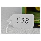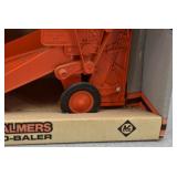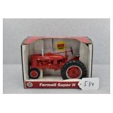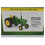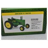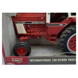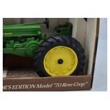NIB = New in Box Lot Numbers Below Will be Offered Live In-House & Online Starting at 10:00 AM: 1. Ertl, Britain’s Precision Key Series, The International 6588 2+2 tractor, (#7 in the series) 1/16th scale #14634, NIB 2. Ertl, 1/16th scale Blueprint replica, International 966 Hydro Tractor, NIB #401 3. Ertl, 1/16th scale, John Deere model 7800 Row Crop #5627CA Tractor w/Duals, NIB 4. Ertl, 1/16th scale, International model 886 tractor w/Safety frame, #461, NIB 5. Ertl, 1/16th scale, Precision Key Series, The International model 1456 tractor (#8 in the series) NIB 6. Pair of International hand tools including Channel Locks marked IH & International, vintage combination open ends wrench (6 total), Marked IH 1059-B 7. Book, Encyclopedia of American Farm Tractors by C.H.Wendel (1979) & Roofing slate hand painted w/International tractor 8. Lot of 3 International 1/64th scale toys including #14668 IH 986 tractor, #14598 IH 1086 tractor & #37607 State tractor #1 Pennsylvania Case IH 1486, all in factory wrap. 9. Pair of Ertl 1/64th scale tractors incl #13051 Oliver 88 Tractor w mounted picker and wagon, #15066 John Deere model 630 tractor w/mounted picker and wagon, both in factory wrap. 10. Ertl Britain’s, 1/16th scale, Precision Key Series #5, International model Farmall H tractor w/Mounted Planter, #14552, NIB 11. Pair of Ertl 1/64th scale tractors including #14073 Farmall 560 tractor w/mounted picker and wagon, #14363 IH 3388 2+2 tractor w/Force Harvester and wagon, both are New in Factory Wrap. 12. Two Items including International Collector license plate & 12” Case IH plastic thermometer (plastic) 13. Pair of new canvas handbags including Case IH (red) & Case IH McCormick Deering Farmall, both are NEW 14. Ertl, 1/16th scale International Model 7488 tractor #467, NIB 15. Ertl Britain’s 1/16th scale Precision Key Series #3, The International model 1468 tractor #14481 NIB 16. Ertl 1/16th scale Farmall Super M-TA tractor #445 NIB 17. Ertl Britain’s 1/16th scale International M Industrial Tractor #14591, NIB 18. Ertl, 1/16th scale, John Deere model 70, Row Crop tractor, #5611 NIB 19. Ertl 1/16th scale, 1993 Special Edition Canadian International Farm Equipment Show, John Deere Model A, 539PA, NIB 20. Ertl Britain’s 1/16th scale, IH McCormick Farmall 460 & 560 tractors, item #14335A, NIB 21. Ertl 1/16th scale, Farmall model H tractor, NIB 22. Scale Models, 1/16th scale, Autographed Farm Progress Show series, Massey Fergusson 1100 Diesel Tractor, both tractor and box are autographed by Joseph Ertl, NIB 23. Scale Models, 1/16th scale Oliver 1955 tractor, Item HC-0095, NIB 24. Ertl, 1/16th scale John Deere Forage Harvester, #509, NIB 25. Ertl, 1/16th scale John Deere 20 series Two Cylinder tractor w/Ammonia tank, #37391 NIB 26. Ertl, 1/16th scale, John Deere Baler #585, NIB 27. Ertl, 1/16th scale, International model 826 tractor, 4652DA, NIB 28. Ertl, 1/16th scale Allis Chalmers model WD-45 tractor (no box). 29. Ertl, 1/16th scale, Allis Chalmers Roto Baler, excellent condition, No Box. 30. Ertl, 1/16th scale, John Deere model 9600 combine, item 2329, NIB 31. 1/16th scale, Farmall model 404 tractor. no box. 32. Ertl, 1/16th scale, International Hydrostatic combine (paint condition issues) combine is complete, No Box. 33. Ertl, 1/16th scale, Special Edition 12-91 International model 5088 tractor, no box. 34. Ertl, 1/16th scale, Farmall model 350 tractor. no box. 35. Ertl, 1/16th scale, John Deere 20 series two-cylinder tractor w/4 bottom plow, #37391, NIB 36. Ertl, stock #597 John Deere articulated 4wd tractor, no box. 37. CHH America, 1/16th scale, Case IH 4wd tractor w/loader, No box. 38. Ertl Britain’s, 1/16th scale Case IH Farmall 560 Diesel tractor, #14415, NIB 39. Ertl Britain’s 1/16th scale, John Deere model 730 tractor, #15821, NIB 40. Ertl Britain’s 1/16th scale, Case IH Farmall M w Disc, 14342 NIB 41. Scale Models, 1/24th scale, Duetz-Allis Gleaner Combine, stock #6000 NIB 42. Ertl 1/16th scale John Deere model 4040 tractor w/Duals, #15478, NIB 43. Ertl 1/16th scale John Deere model 3010 tractor, #5635 NIB 44. Ertl 1/16th scale, John Deere row crop tractor w/sound guard cab, #143, NIB 45. Ertl Britain’s 1/1th scale, John Deere model 60 tractor w/1955 Chevy Dealership Pick up truck (Dealer Edition), #15892 NIB 46. Ertl 1/16th scale, Farm Country Vintage Hay Wagon, hay included, NIB 47. Scale Models 1/16th scale Minneapolis Moline model 6940 tractor, 1992 Dyersville summer show tractor, HC-0095, NIB 48. Ertl 1/16th scale John Deere Chuck Wagon, #533, NIB 49. Ertl 1/16th scale, IH McCormick Farmall model Super H tractor, #14269, NIB 50. Scale Models 1/16th scale, Oliver 2255 tractor, 2003 Farm Progress Show, NIB 51. Ertl 1/16th scale, John Deere Mower Conditioner, #598, NIB 52. Ertl 1/16th scale, John Deere Model 520 Tractor, #15360, NIB 53. Ertl 1/16th scale, McCormick Farmall Super M-TA tractor, #445, NIB 54. Ertl 1/16th scale, International 4 Bottom trailing plow, NIB 55. Scale Models 1/16th scale, 2003 Iowa FFA Special Edition Allis Chalmers model 185 tractor. FFA at 75 years. #HC-0502, NIB 56. Pair of Ertl 1/16th scale International toys including Disc Harrow & Corn Wagon, No boxes. 57. Ertl 1/16th scale, New Holland Tandem Axle Manure Spreader, no box. 58. Ertl 1/16th scale, International small hay baler, no box. 59. JLE Joseph L. Ertl, 1/16th scale John Deere Model A tractor, Limited Edition 1235 of 5000 tractor. 1890-1990 Wyoming Centennial. No box. 60. Ertl, 1/16th scale, McCormick Farmall 350 tractor w/True Scale two row mounted corn picker. 61. Ertl 1/16th scale Case Agri King tractor, repainted by Bill Brock of Indianna, no box. 62. Ertl 1/16th scale John Deere model 3010 tractor, no box. 63. Ertl 1/16th scale, New Holland kicker bale wagon w high sides. No box. 64. Ertl 1/16th scale John Deere tractor w/cab, no box. 65. Spec Cast 1/16th scale, Oliver model Super 88 tractor, #SCT-225 NIB 66. Pair of Vintage 1/16th scale John Deere Plows including Single bottom 